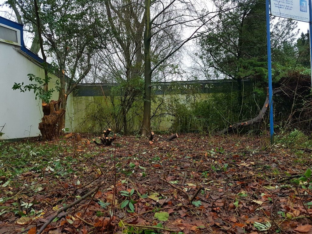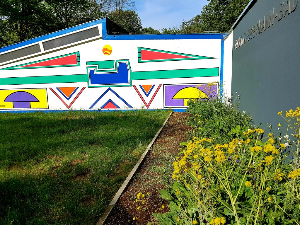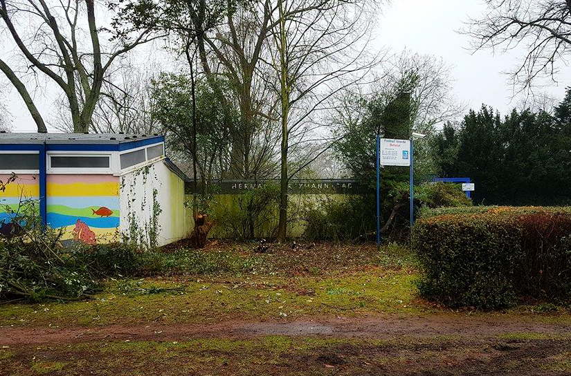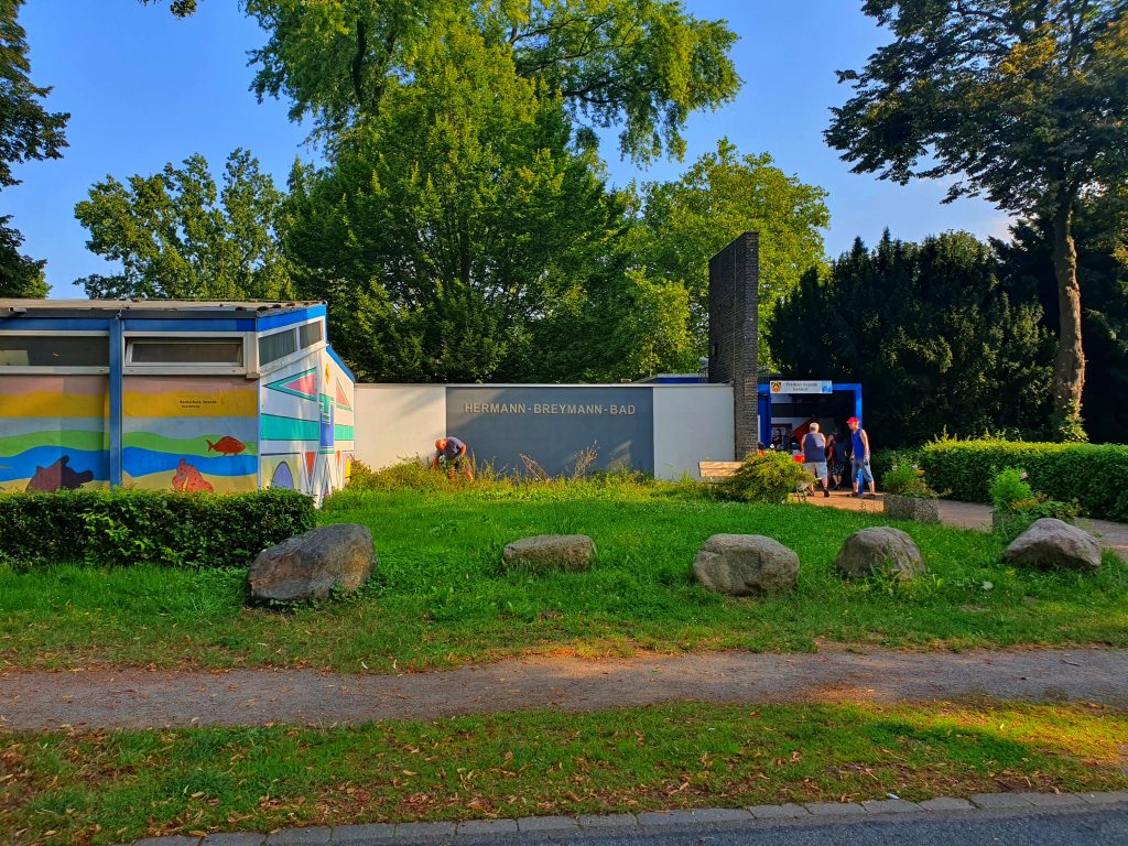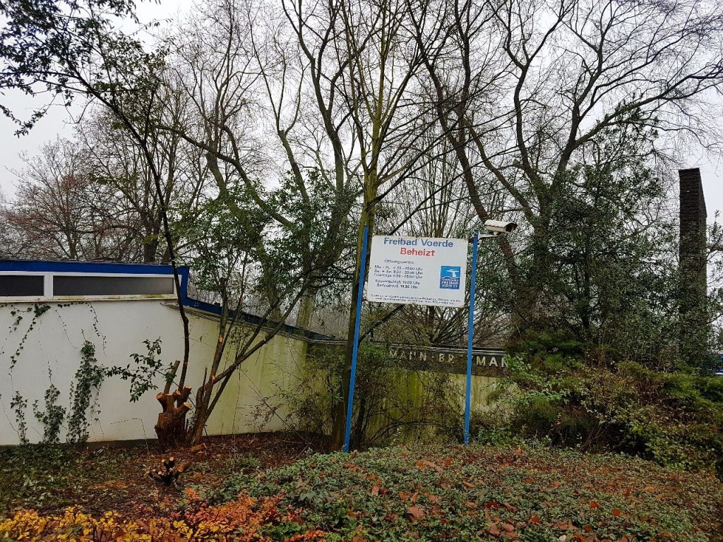 Aber zurück zu den Anfängen 2017: Der Eingangsbereich des Freibades hatte damals geradezu notfallmäßig eine dringende Neugestaltung nötig: zugewuchert war die Fassade und durch Fäulnis, Nässe und bröckelnden Putz in einem wahrhaft schlechten Zustand. Der Förderverein ergriff die Initiative, nahm die Stadt Voerde zur Rodung mit ins Boot, und schuf ein völlig neues Areal.