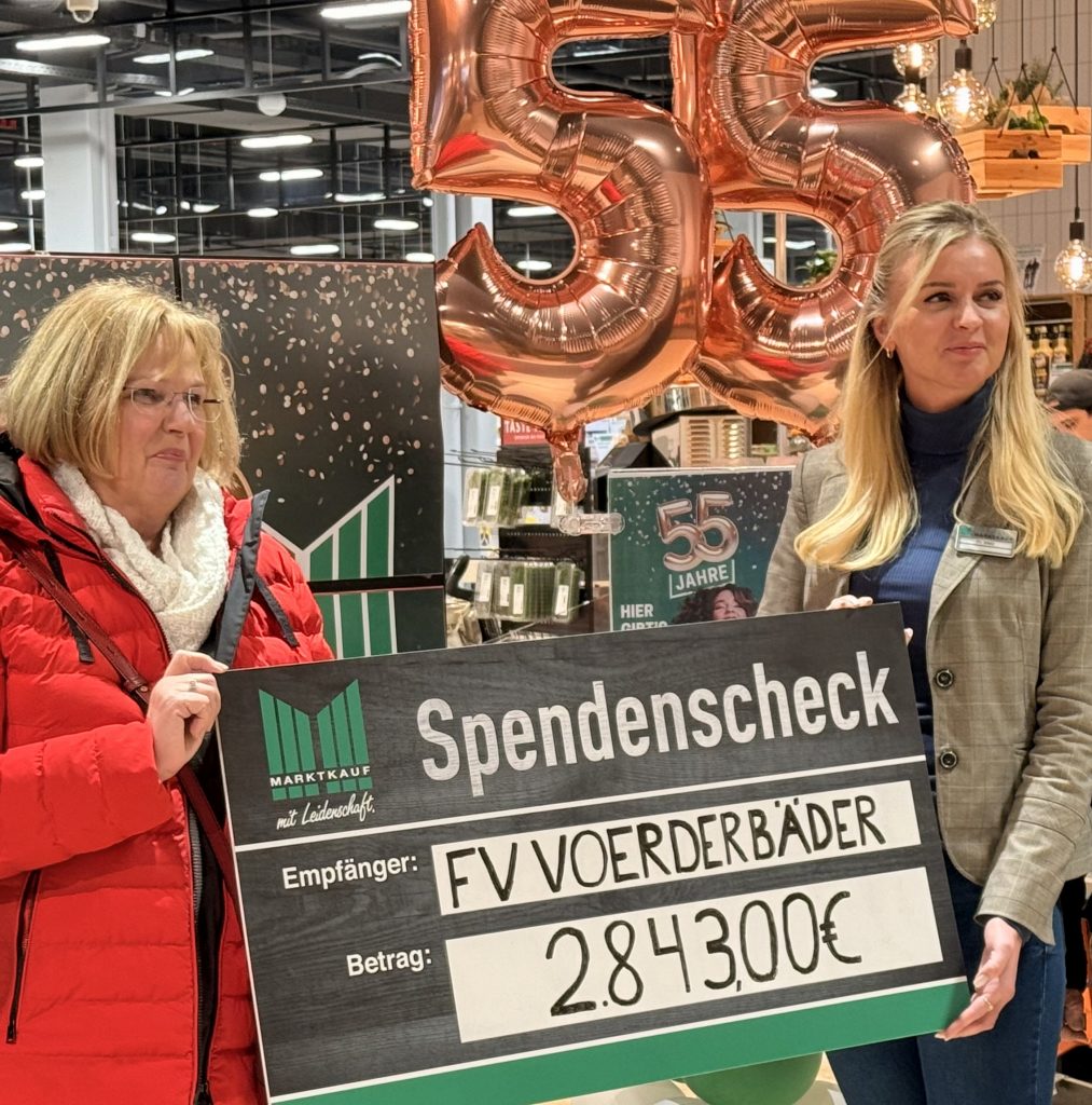 Unsere Geschäftsführerin Frau Welz hat den Spendenscheck an den Förderverein Voerder Bäder e.V. überreicht – und das alles nur dank euch!